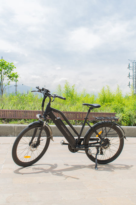 Fuerte y elegante para moverte en la ciudad. Cuadro rígido en aluminio, motor 350W con 4 niveles de asistencia, batería 36V 10.4Ah extraíble y velocidad asistida hasta 25 km/h. Incluye guardabarros y luces delantera y trasera para tus trayectos diarios.