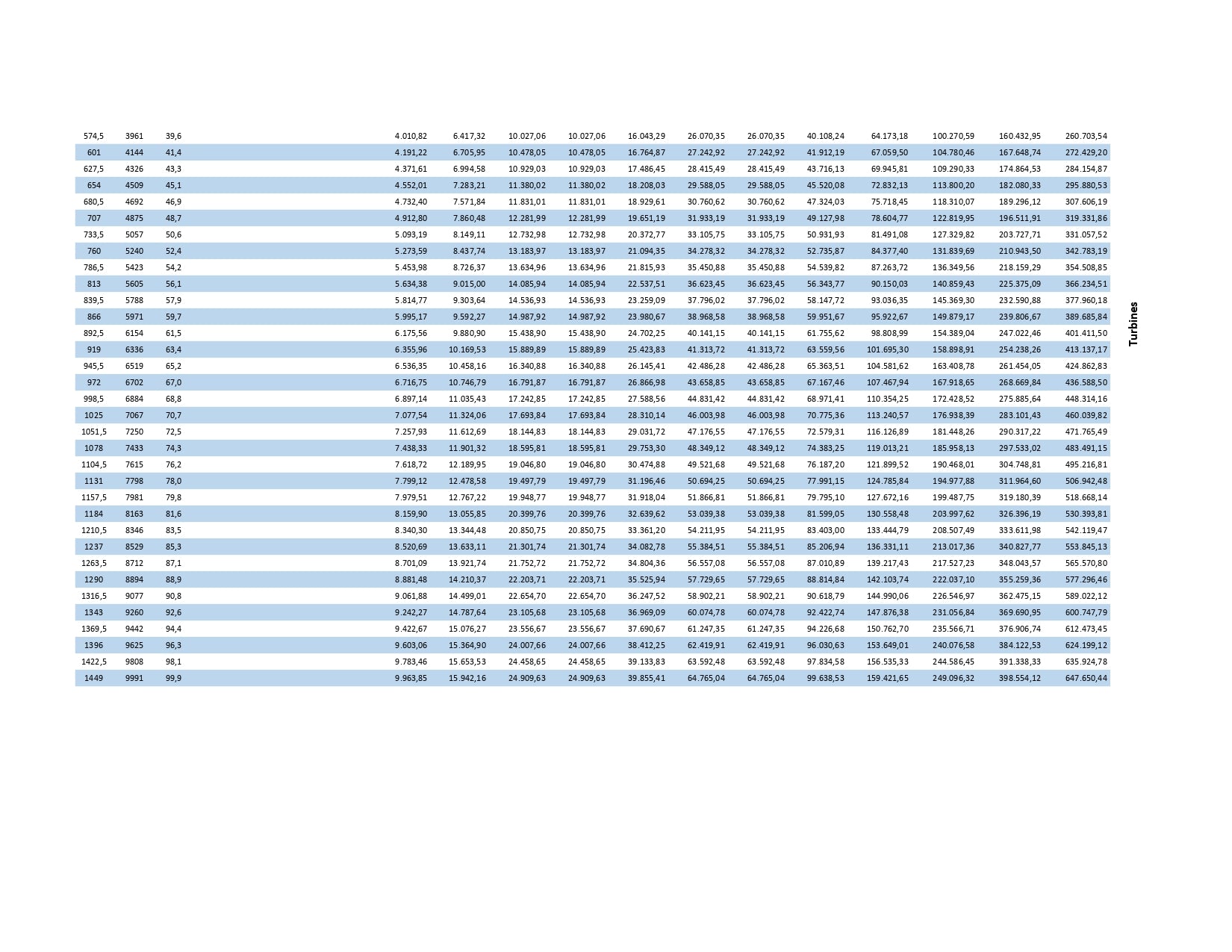 | Vol. por rotación | 2.10 x 10 (-4) | 2.83 x 10 (-4) | 5.66 x 10 (-4) | 5.66 x 10 (-4) |