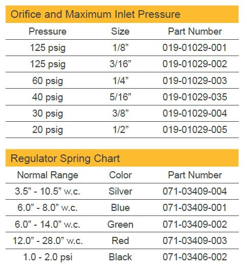 Presión de salida: Configurado para una presión de salida de 7.0” w.c. con variaciones permitidas de +2.0” w.c. y -1.0” w.c.